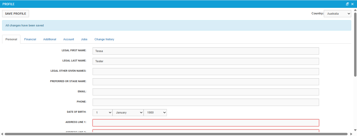 The Talent Profile collects details for payment processing. If you manage Talent profiles, update them with the required information below as soon as possible. This is required for ATO payroll compliance.